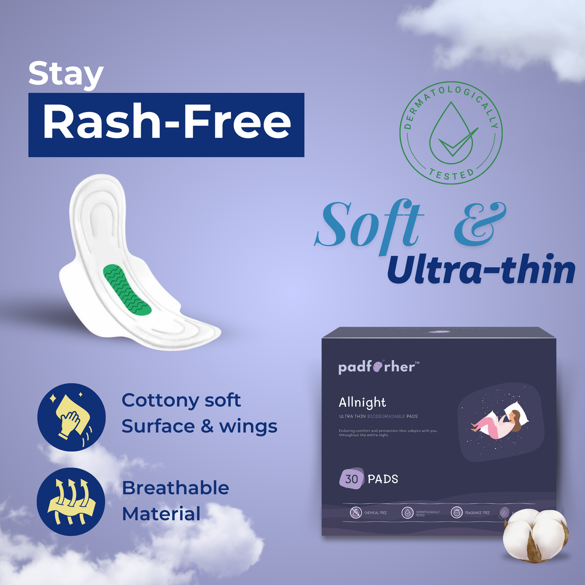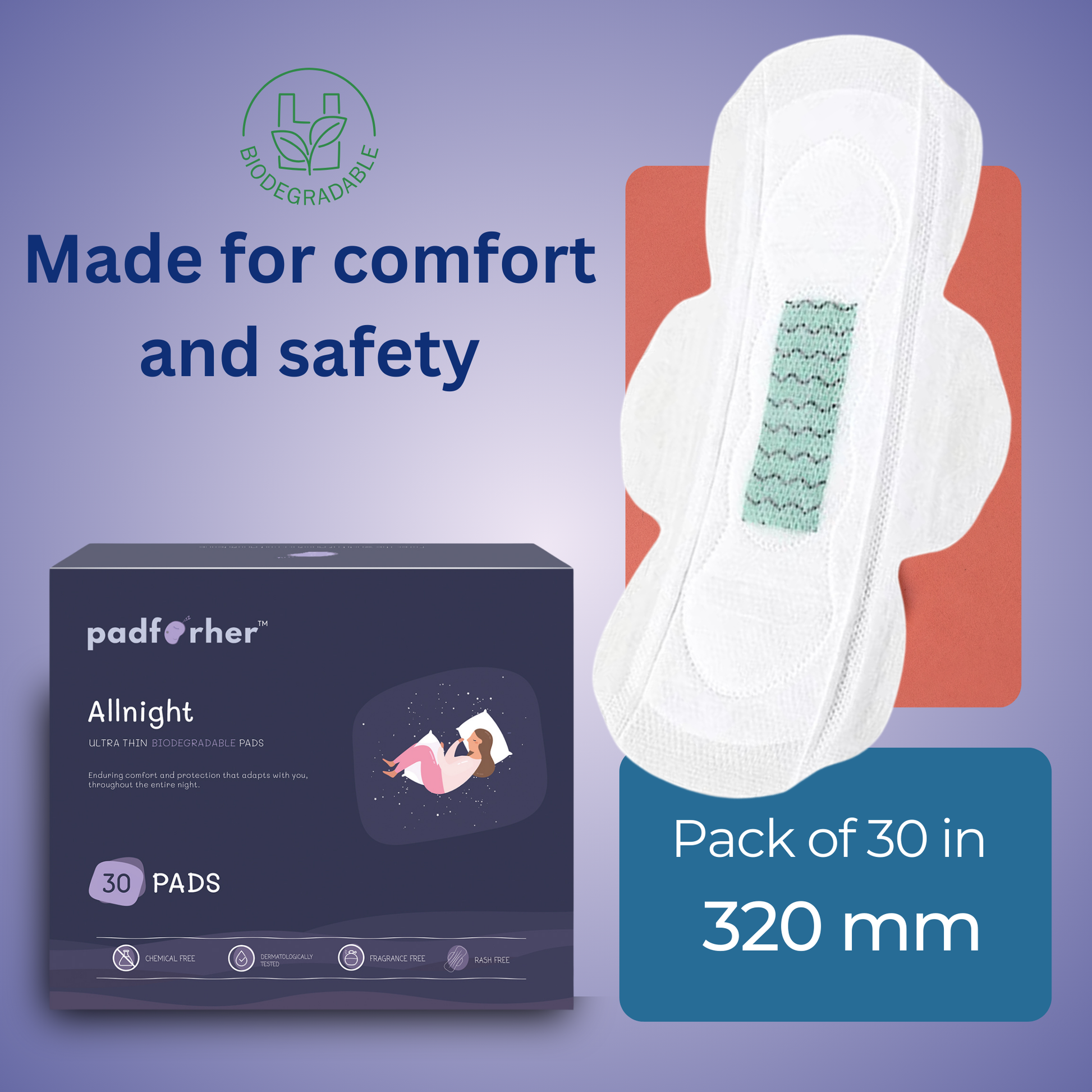 - COMPLETE LEAKAGE PROTECTION: ALLNIGHT organic pads offer up to 100% leakage protection, allowing you to manage heavy flow effortlessly with complete confidence. The XL size (320mm) ensures full coverage, specially designed for women and girls.